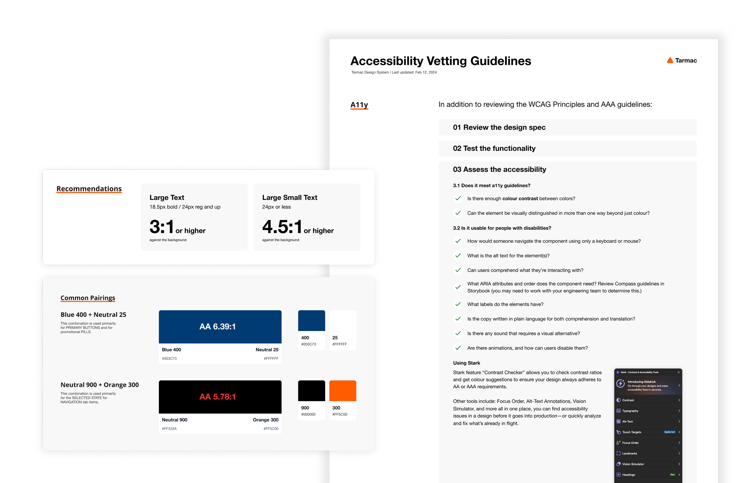 Standardizing how components, styles, and formatting are used across Tarmac features.